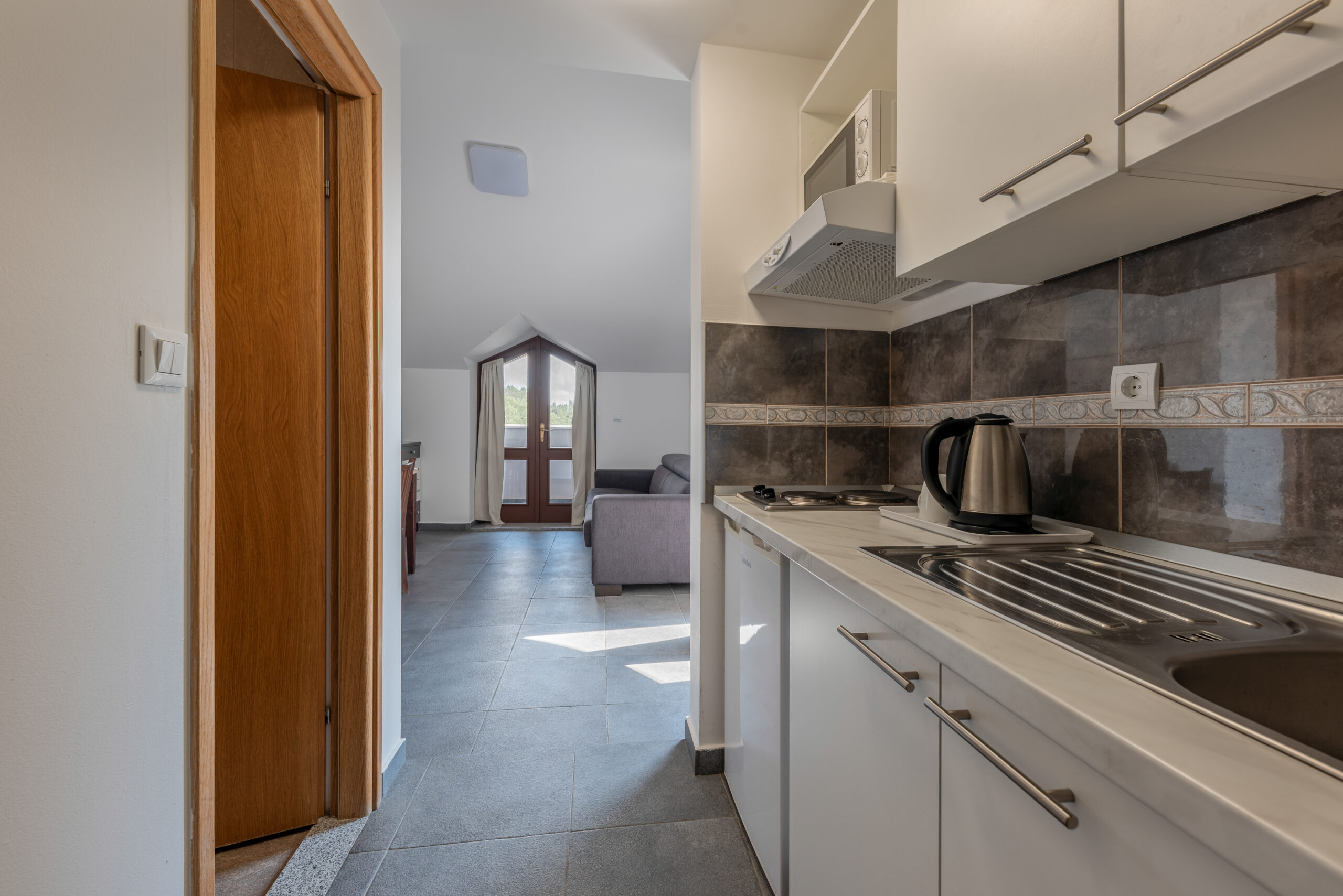 Comfort one-bedroom apartment with balcony is great for couples or larger families with children. The spacious apartment features multiple balconies. Two of them have a nature view and one has a sea view. Great setting for a big family or a group of friends. Like the rest of our apartments, comfort one bedroom features all the amenities that you can find in the modern and equipped apartments.